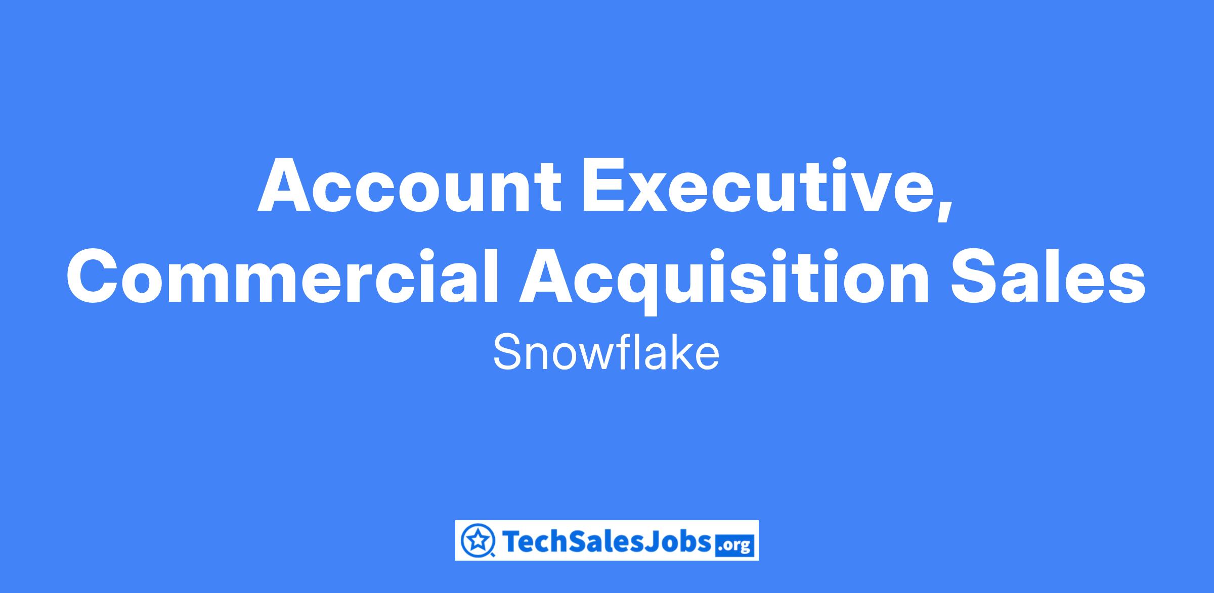 Snowflake’s sales organization continues to grow and we are actively seeking an Account Executive to join the Commercial Sales team. Our Account Executives are customer obsessed and we believe in the value we can add and stay honest about it. We love to learn, are open to giving and receiving feedback and are passionate about making our clients successful. Our team works to ensure data is accessible, usable and valuable to everyone.