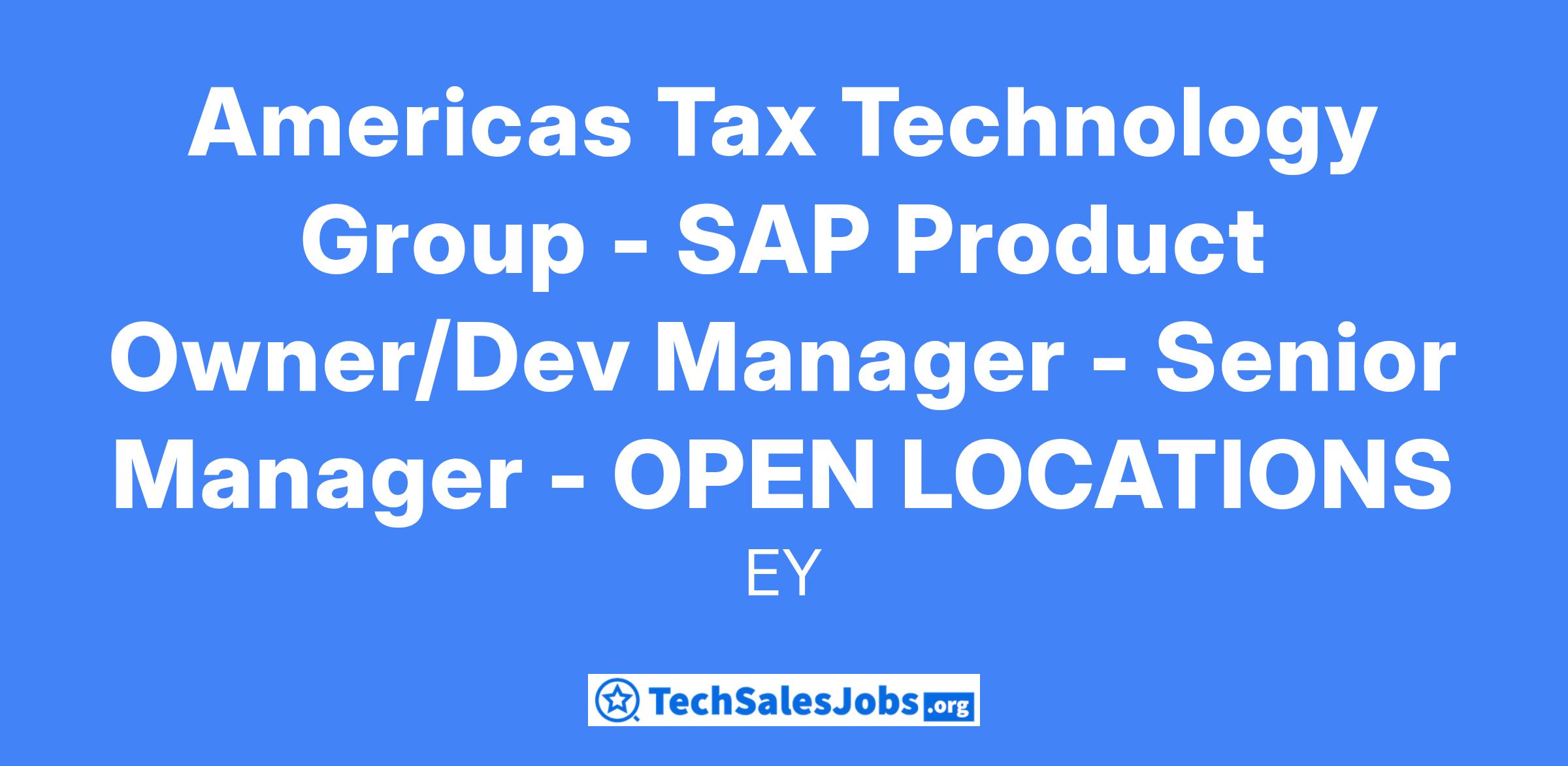 Americas Tax Technology Group - SAP Product Owner/Dev Manager - Senior Manager - OPEN LOCATIONS