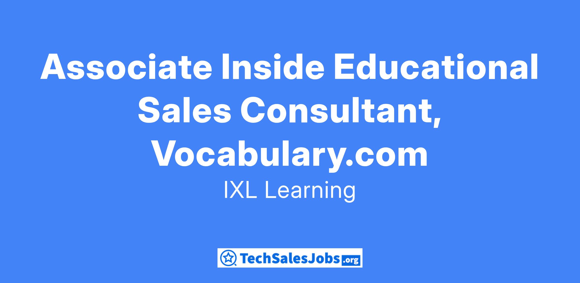 IXL Learning, developer of personalized learning products used by millions of people globally, is seeking an upbeat, focused, high-energy individual to join our Inside Sales team for Vocabulary.com. The Vocabulary.com platform is a rapidly-growing platform with about 3 million students worldwide and over 56,000 schools and districts. #LI-NF1
