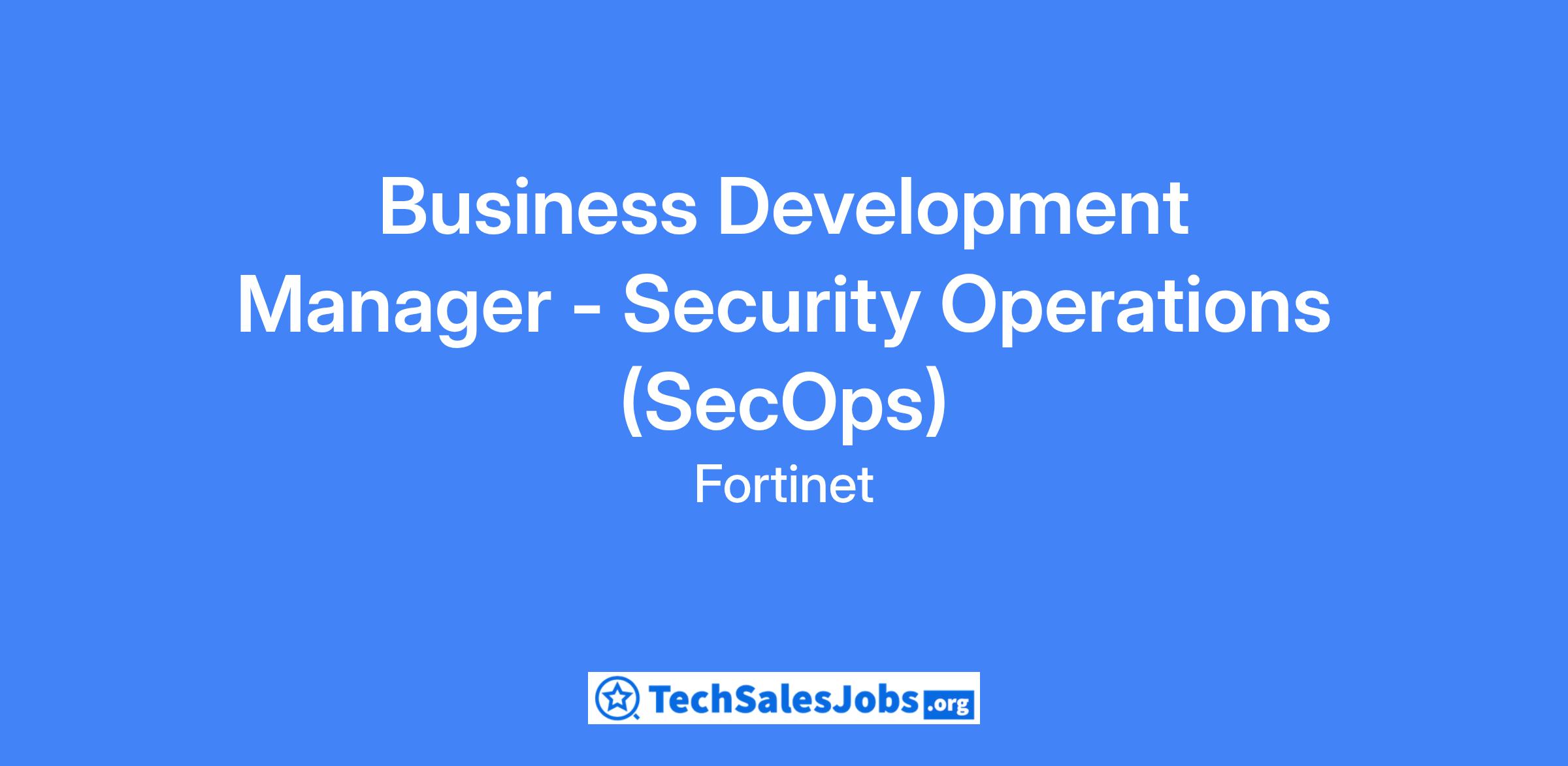 Role: Business Development Manager – Security Operations (SecOps)