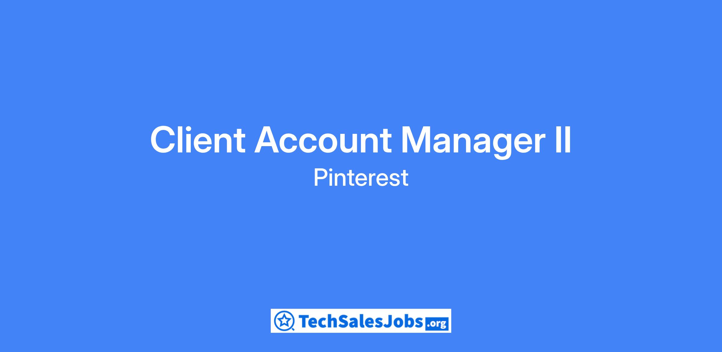 As a Client Account Manager II, you will be in charge of driving a sophisticated book of business featuring some of the largest advertisers at Pinterest. You’ll work directly with some of our key advertisers as a trusted consultant to their business. Your strategic advice, analytical skills and sales skills are core to bringing to life the value we deliver as a platform.