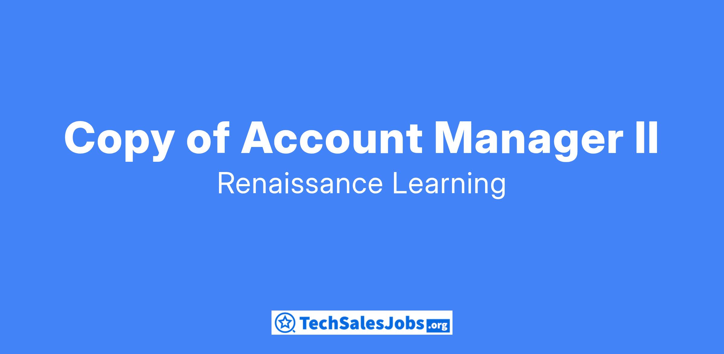 The Account Manager II is responsible for managing and selling Renaissance Learning’s products and services, with a focus on Practice and Instruction, within assigned territory, and achievement of revenue goals through prospecting, new business, customer renewals, cross-sell, and up-sell opportunities.