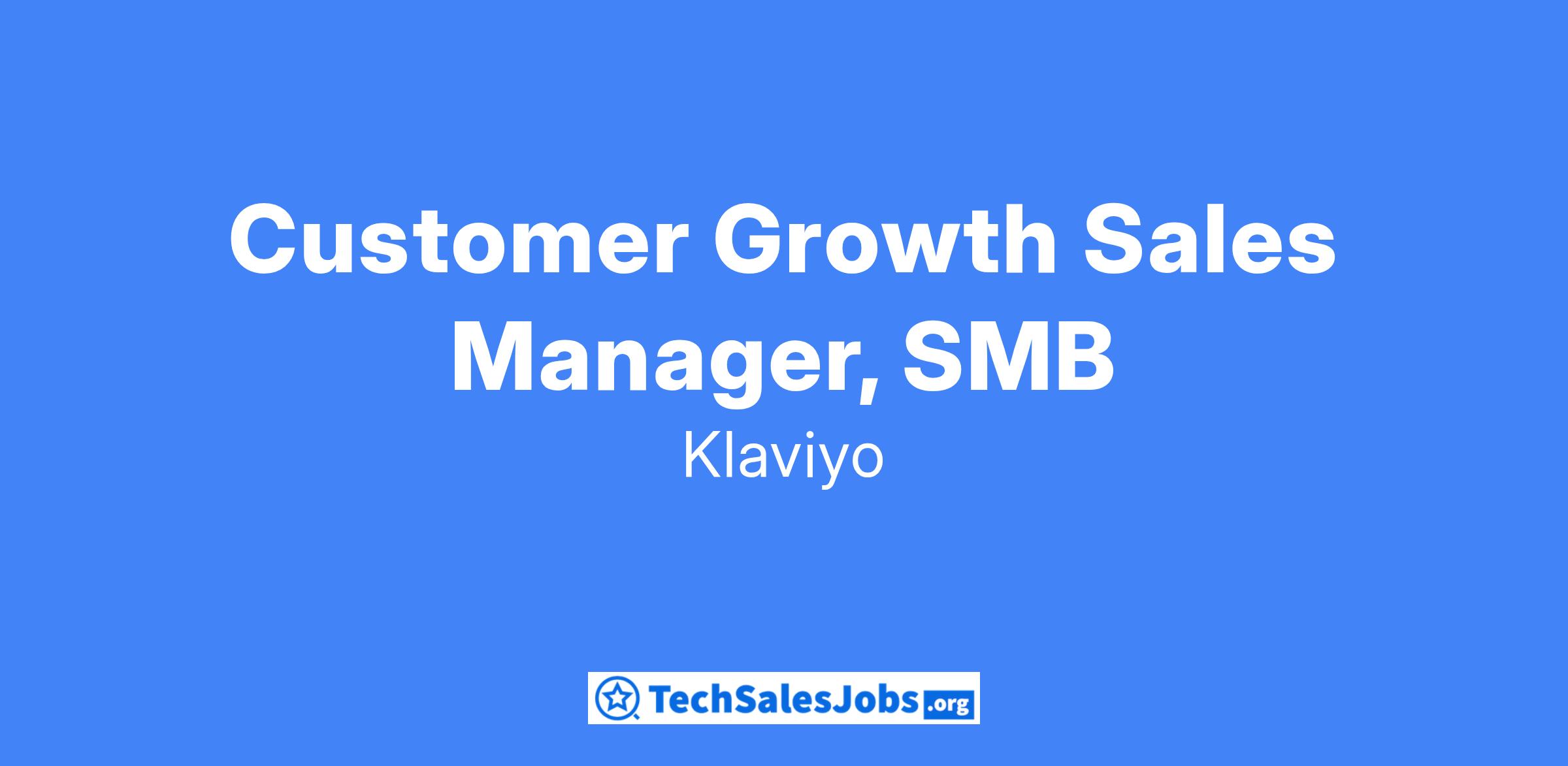 The SMB Customer Growth Sales Manager will be responsible for hiring, training, coaching, and leading a team of ~7-9 Account Executives. The SMB segment includes Klaviyo’s install base customers who each drive $2.5-30M in annual revenue. The manager will constantly raise the bar of excellence in hiring, development, holding direct reports accountable to KPIs, operating highly effectively cross-functionally, and providing Senior Sales Leadership with accurate forecasts and any notable updates or learnings from the field. Our past three Quarterly Earnings Reports have highlighted SMB Customer Growth work, cross-sell sales growth excellence, and specific customers sold by this organization. This is an opportunity to lead a team that is immediately impacting the growth of Klaviyo as a public company.