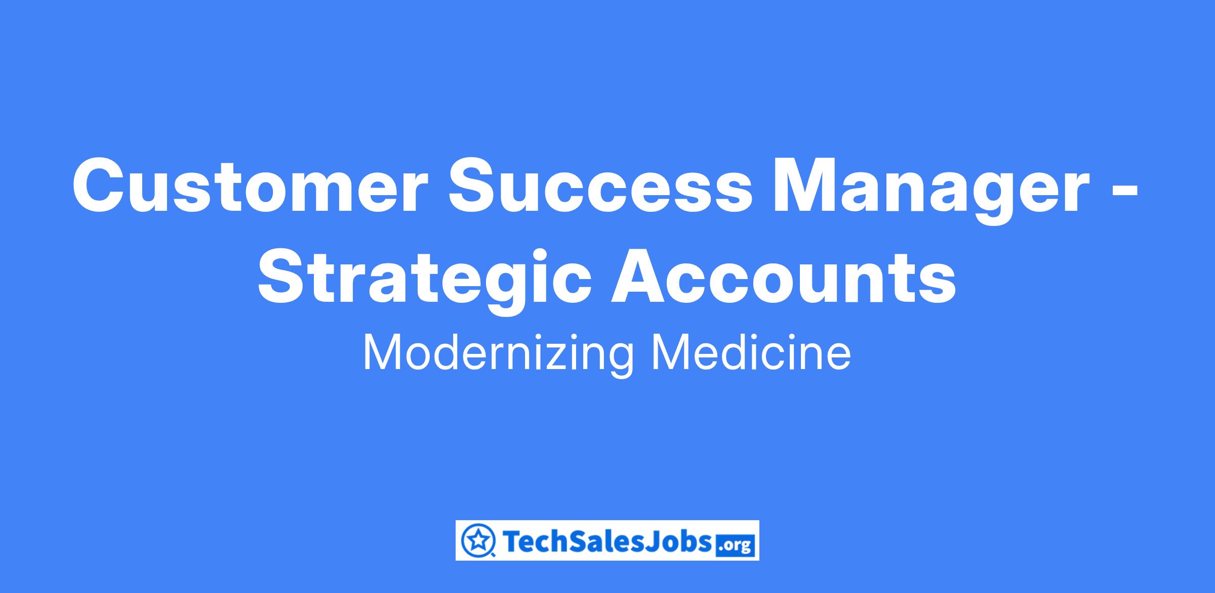 ModMed is hiring a driven Customer Success Manager to join our positive, passionate, and high-performing Strategic Customer Success team focused on acting as the post-sale consultative partner and trusted advisor to our clients, and is responsible for the retention and advocacy of an assigned book of business. This is an exciting opportunity to serve as the primary relationship owner between our strategic customers and internal stakeholders within a fast-paced Healthcare IT company that is truly Modernizing Medicine! The CSM will be held accountable for articulating the value of our SaaS cloud platform, while driving customer engagement and adoption. It is expected that the CSM will understand their customer’s business goals and advocate on their behalf by proactively identifying risk(s) and collaborating internally to deliver solutions and identify appropriate upsell opportunities.