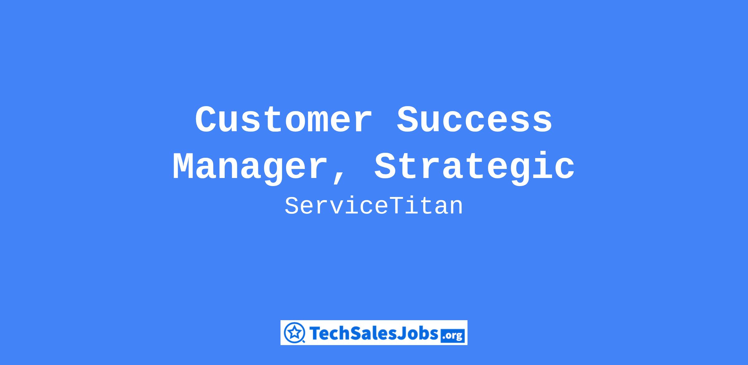 As a Customer Success Manager, Strategic Accounts, you’ll manage the long-term success of ServiceTitan’s largest customers, our strategic accounts (franchise systems and select multi-location enterprise customers). You’ll create partnerships with management contacts in strategic accounts and collaborate on projects and initiatives to drive ongoing success, product adoption, and evangelism with franchise owners and end users.
