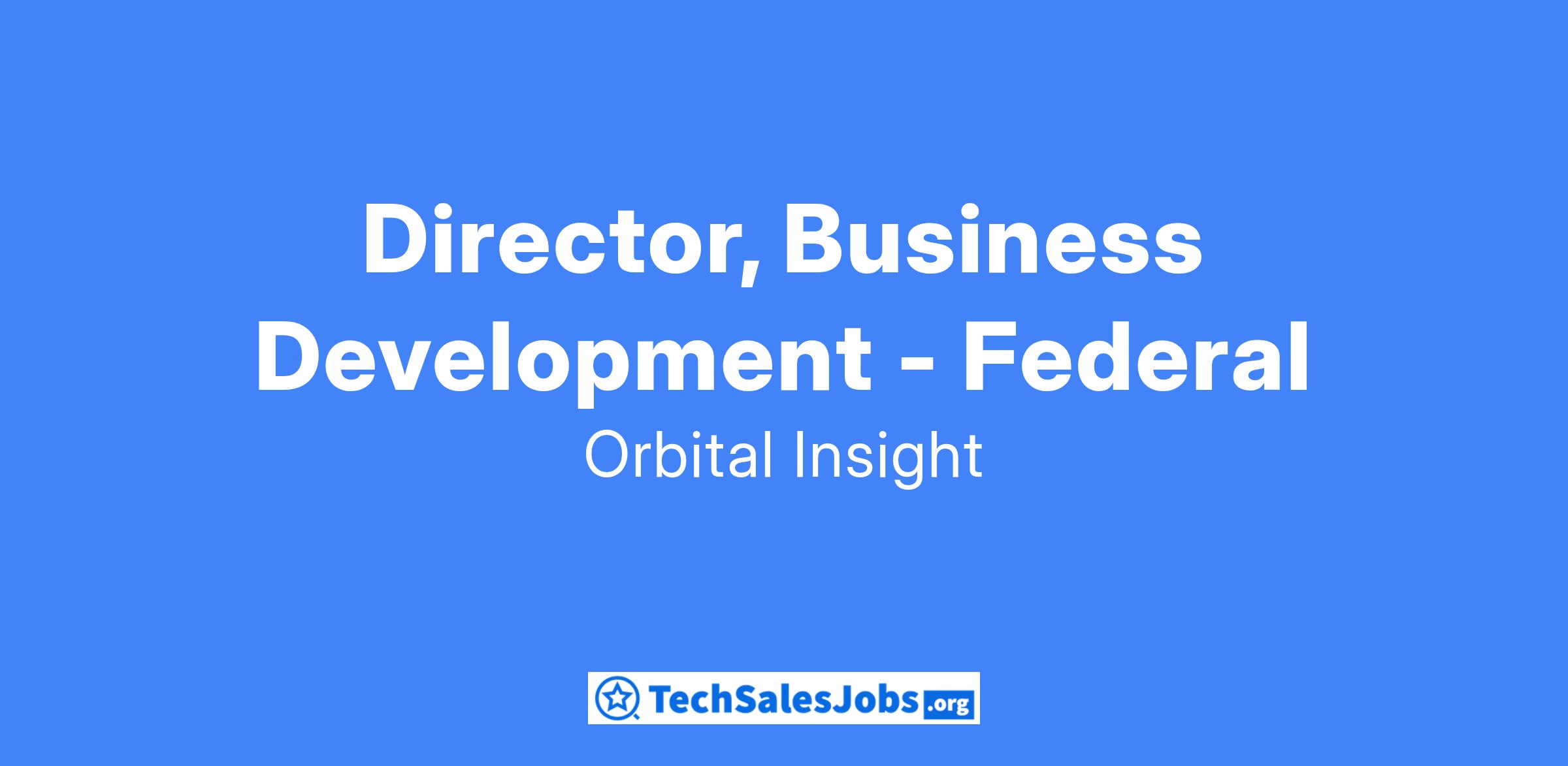 Orbital Insight, Inc. is seeking a Director of Federal Business Development to join our Federal team. As our Director of Federal Business Development, you will be responsible for leading Federal capture for specific opportunities, strengthening and evolving partnerships to produce new opportunities, and consistently build customer relationships to ensure long term contract growth. You will identify new opportunities and support by growing the multi-year pipeline. This role will require you to regularly collaborate with our Product and Engineering teams to prioritize features needed for opportunities and to grow the long term pipeline.