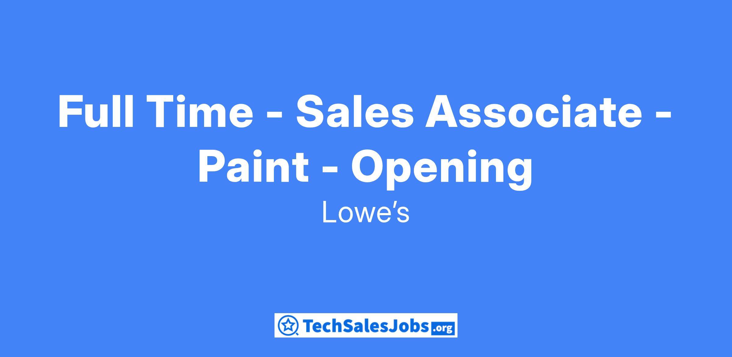 Full Time - Sales Associate - Paint - Opening