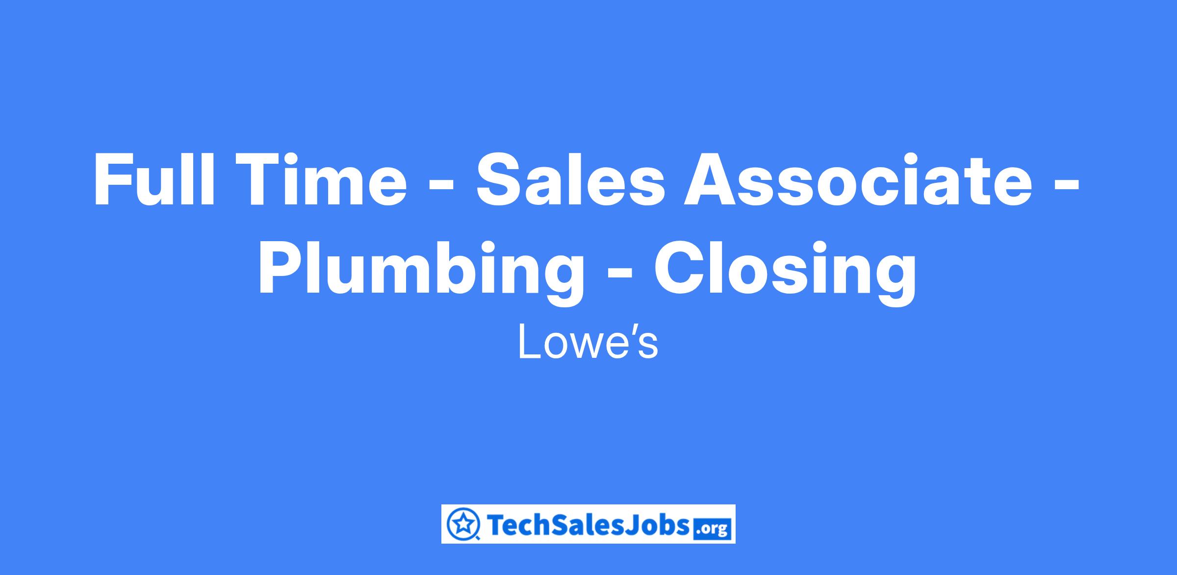 Full Time - Sales Associate - Plumbing - Closing