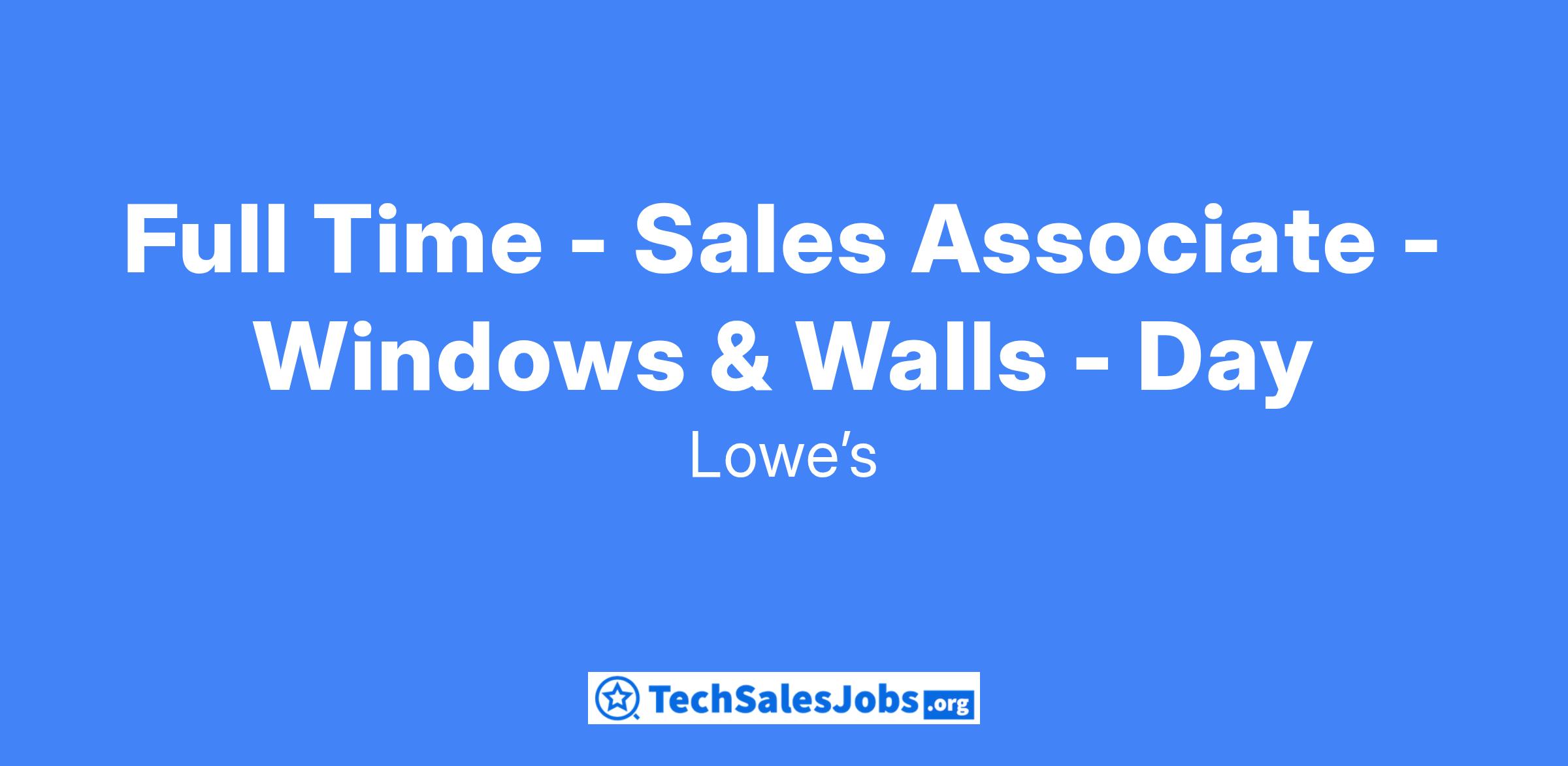 Full Time - Sales Associate - Windows & Walls - Day