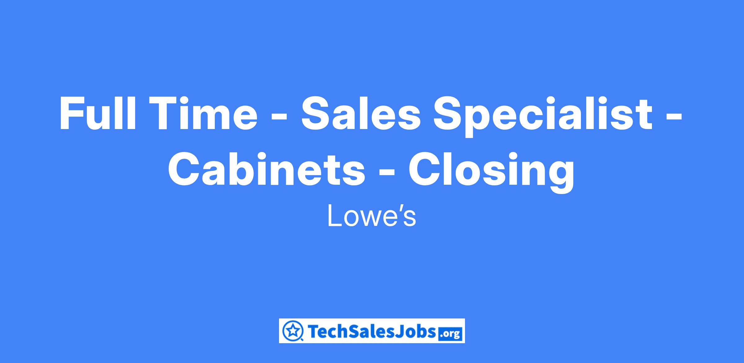 Full Time - Sales Specialist - Cabinets - Closing