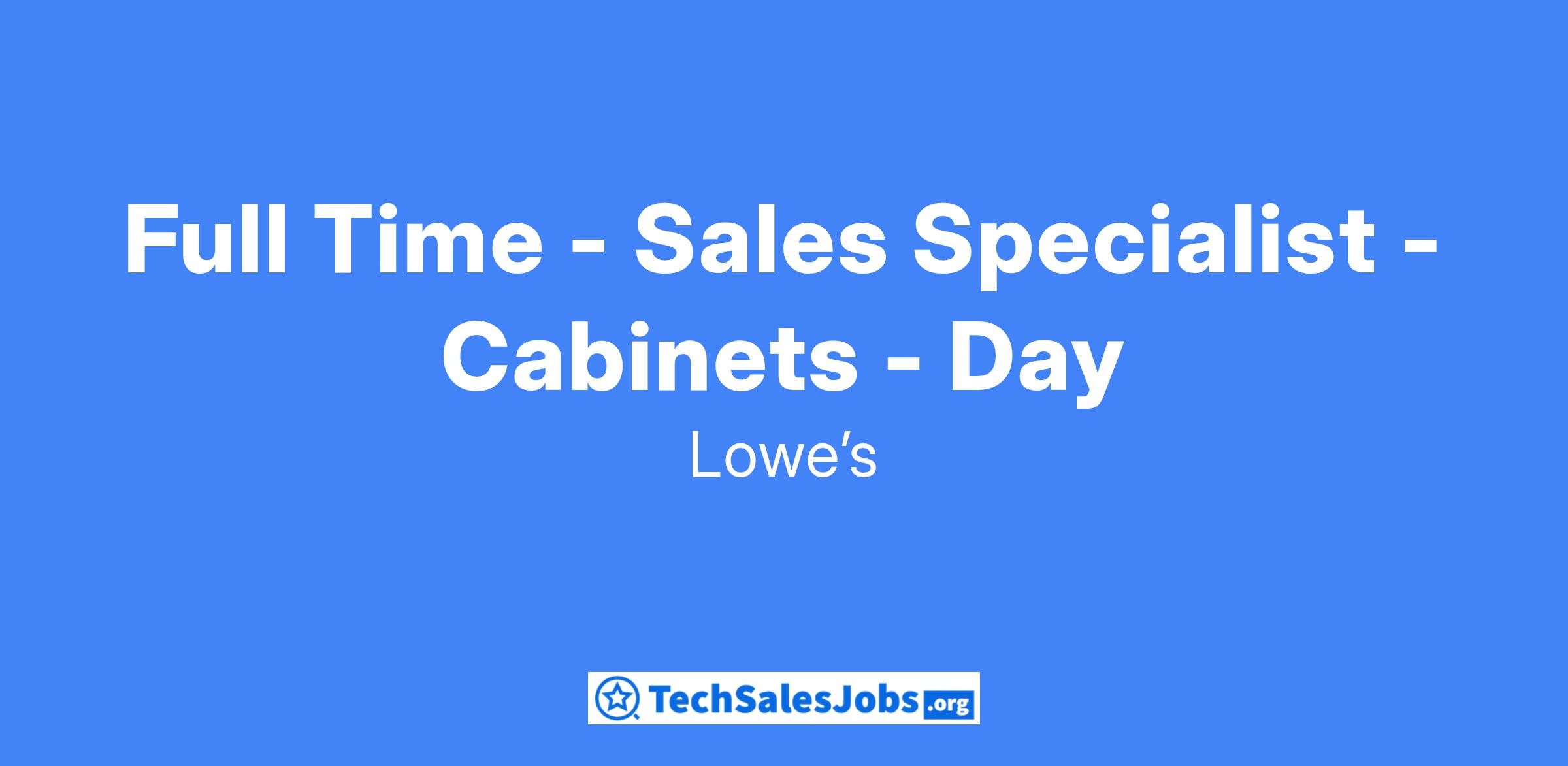 Full Time - Sales Specialist - Cabinets - Day