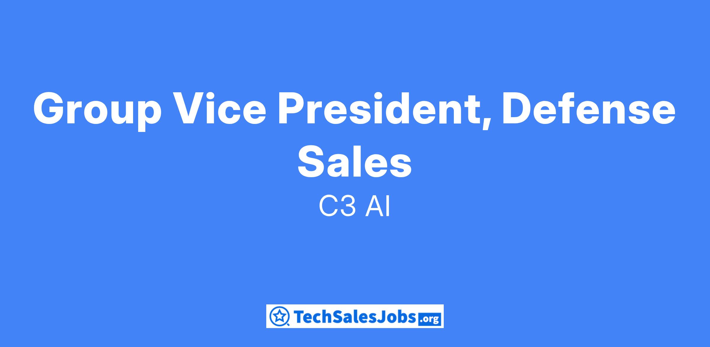 C3 AI is seeking a Group Vice President, Defense Sales to lead sales efforts within the Federal Defense Sector. This senior leadership role reports to the President of C3 Federal Systems and focuses on driving revenue growth, building strategic relationships, and helping defense customers achieve digital transformation goals through AI and machine learning solutions.