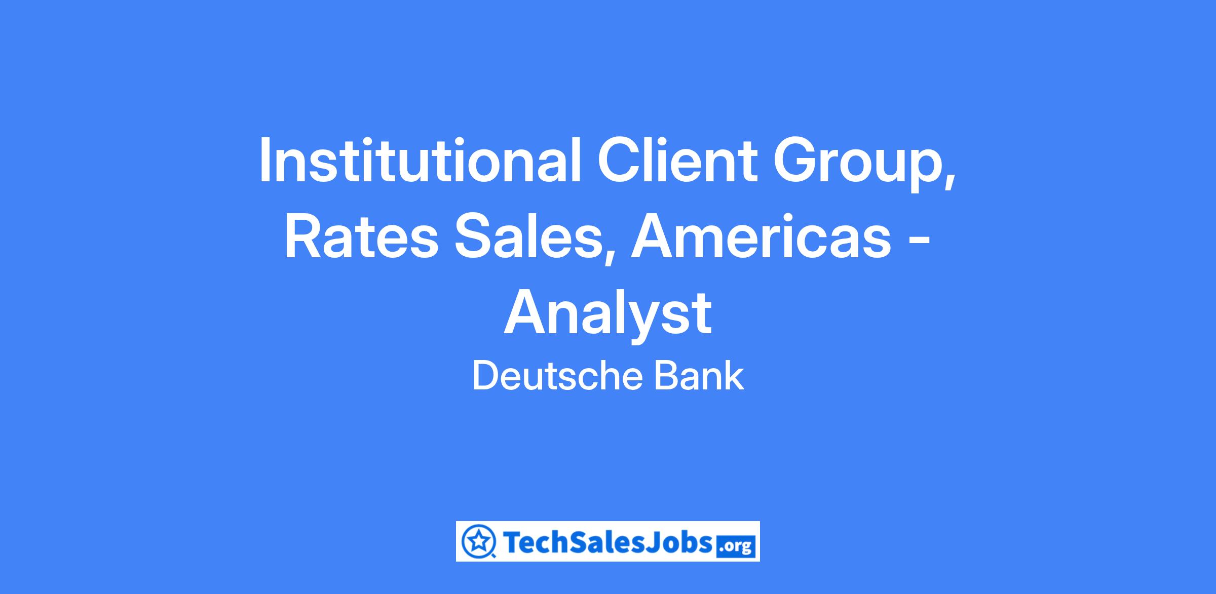Job Title: Institutional Client Group, Rates Sales, Americas