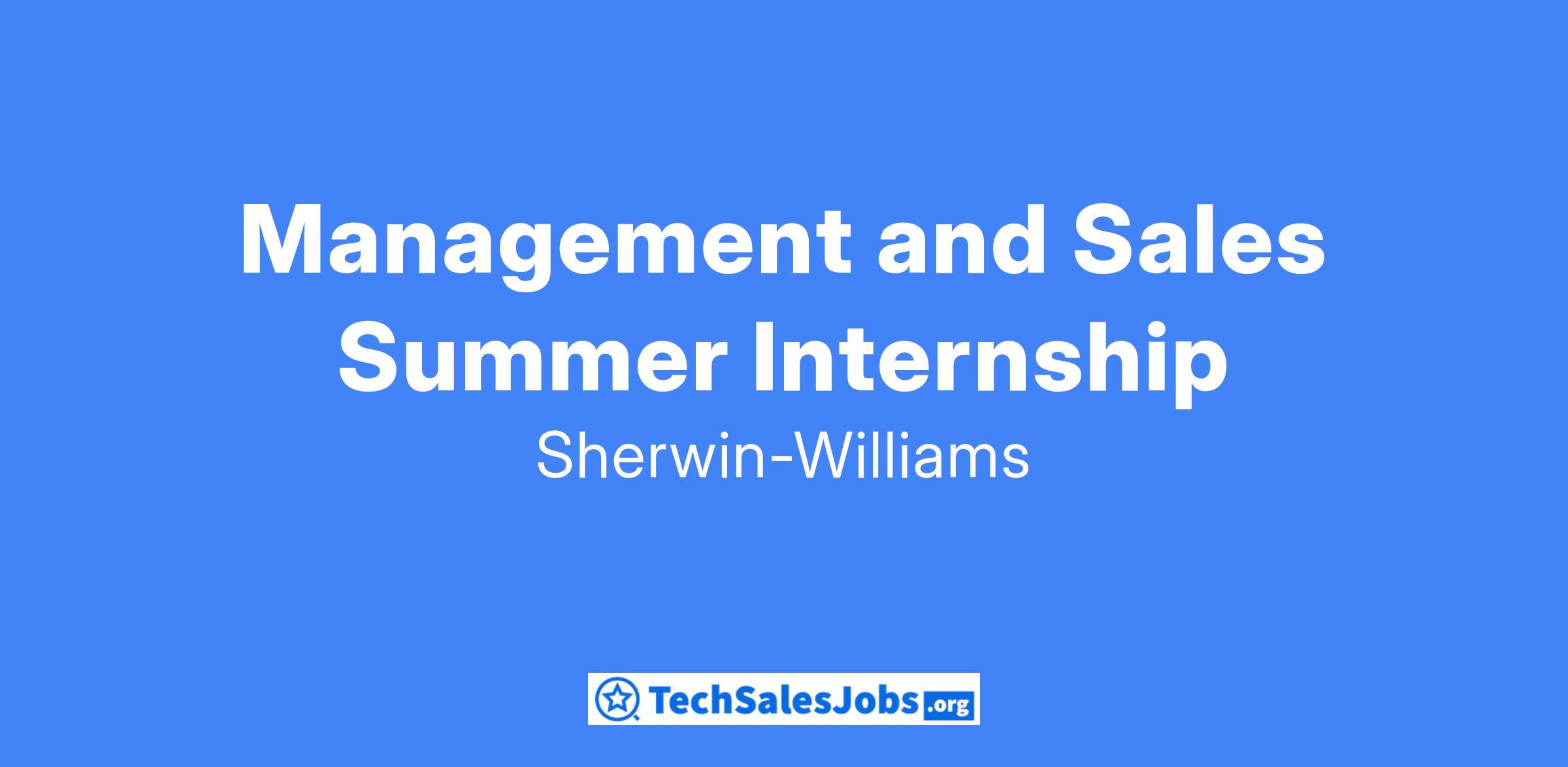 The Sherwin-Williams Management & Sales Internship is a paid, 10-12-week summer program offering hands-on experience in our retail stores, providing insight into management, sales, and store operations as well as meaningful customer experiences. Our store internship program is designed to provide you with a comprehensive learning experience through practical business-to-business and retail experience working in a paint store. You will gain insight into a career in outside sales by traveling with a Sales Representative and spending structured time with your management team. You will also complete a project that addresses critical business issues alongside your peers and with the support of leadership.