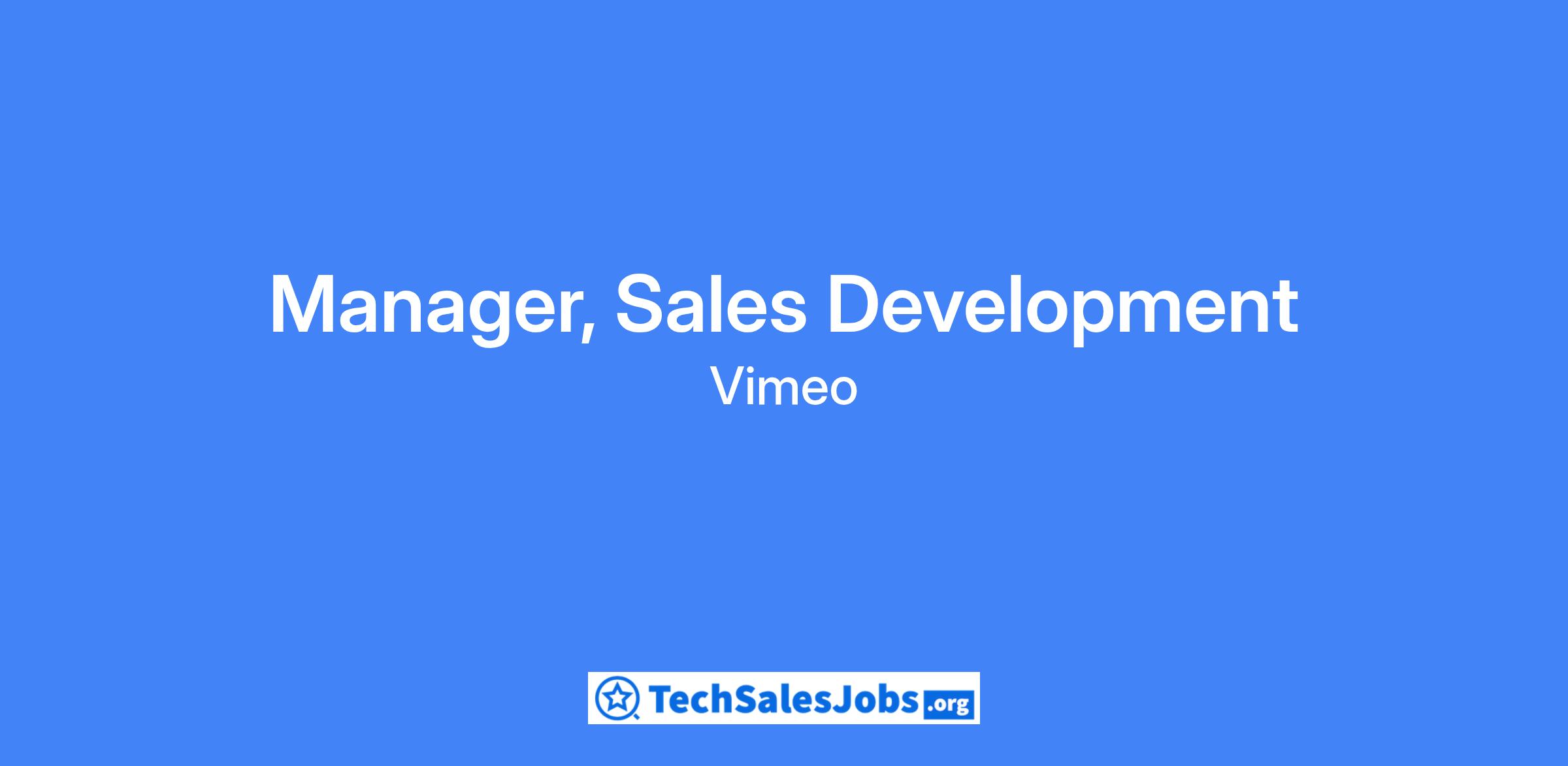 Vimeo is looking for a driven Manager of Sales Development to run a team of Sales Development Reps (SDRs). Vimeo's SDRs are focused on driving qualified leads and pipeline growth from Vimeo’s inbound funnel for our Enterprise products.