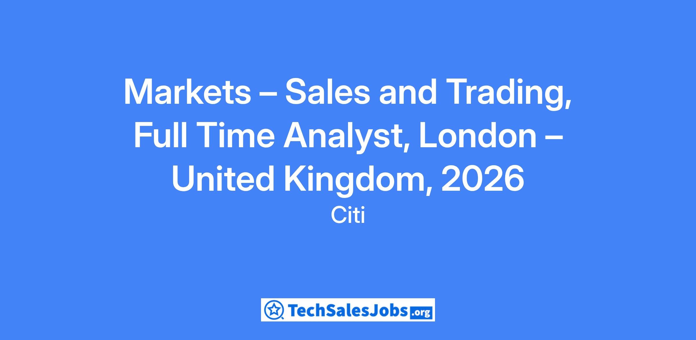 Citi is looking for full-time analysts to join our Markets team in London. Markets at Citi provides world-class solutions that are as sophisticated and diverse as the needs of the corporates, institutions, governments and individual investors we serve in 160 countries and territories. We work on trading floors in over 80 countries, enriching client relationships around the clock. The breadth and depth of our underwriting, structuring, securitisation, sales and trading and distribution capabilities span asset classes and currencies, sectors and industries. And our expertise covers a vast array of products including equities, commodities, credit, futures and foreign exchange (FX).