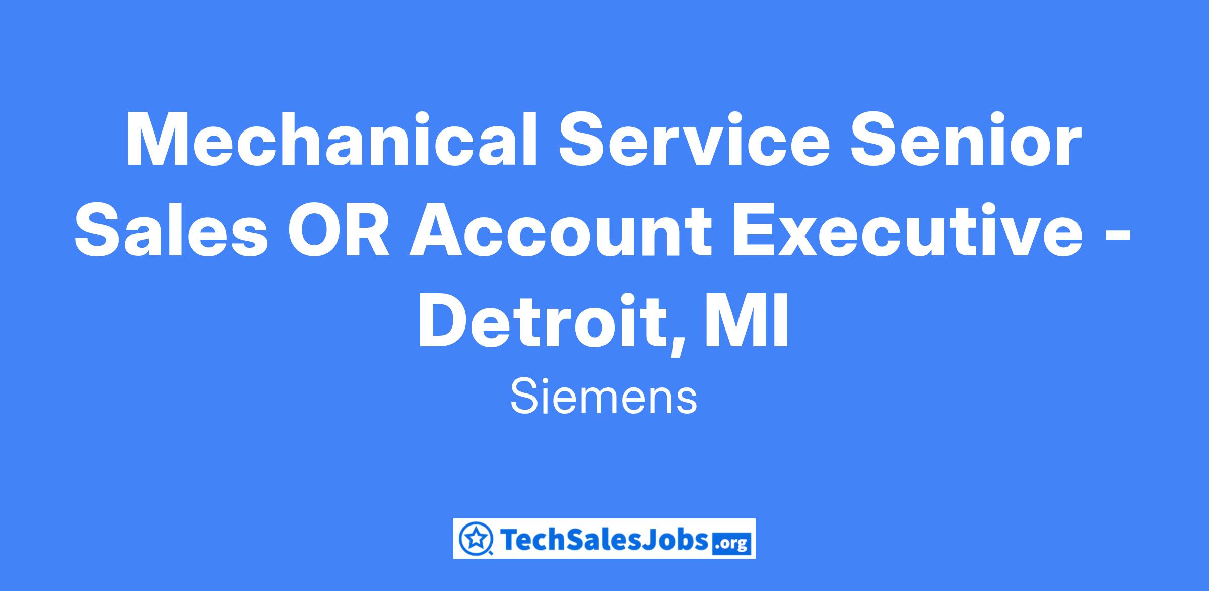 The Mechanical Service Senior Sales OR Account Executive. The primary responsibility of this role is to grow Siemens market share by delivering smart mechanical services that help our customers reduce operating cost, improve uptime, and provide a comfortable and healthy indoor environment. In this position, you will achieve booking and profit goals by developing and implementing plans to grow, develop, and manage end-user relationships; capitalize on sales opportunities within the territory; and win opportunities independently within our established guideline. Why is this so important? Our Senior Sales Executives are the face of Siemens, and your expertise and regular interaction with the customer will help them save energy and money, as well as create a more sustainable future for our environment.