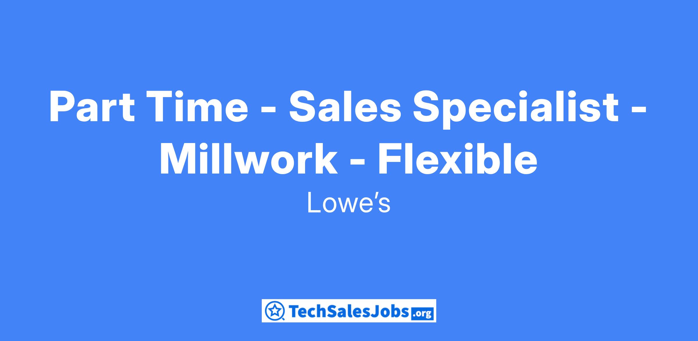 Part Time - Sales Specialist - Millwork - Flexible