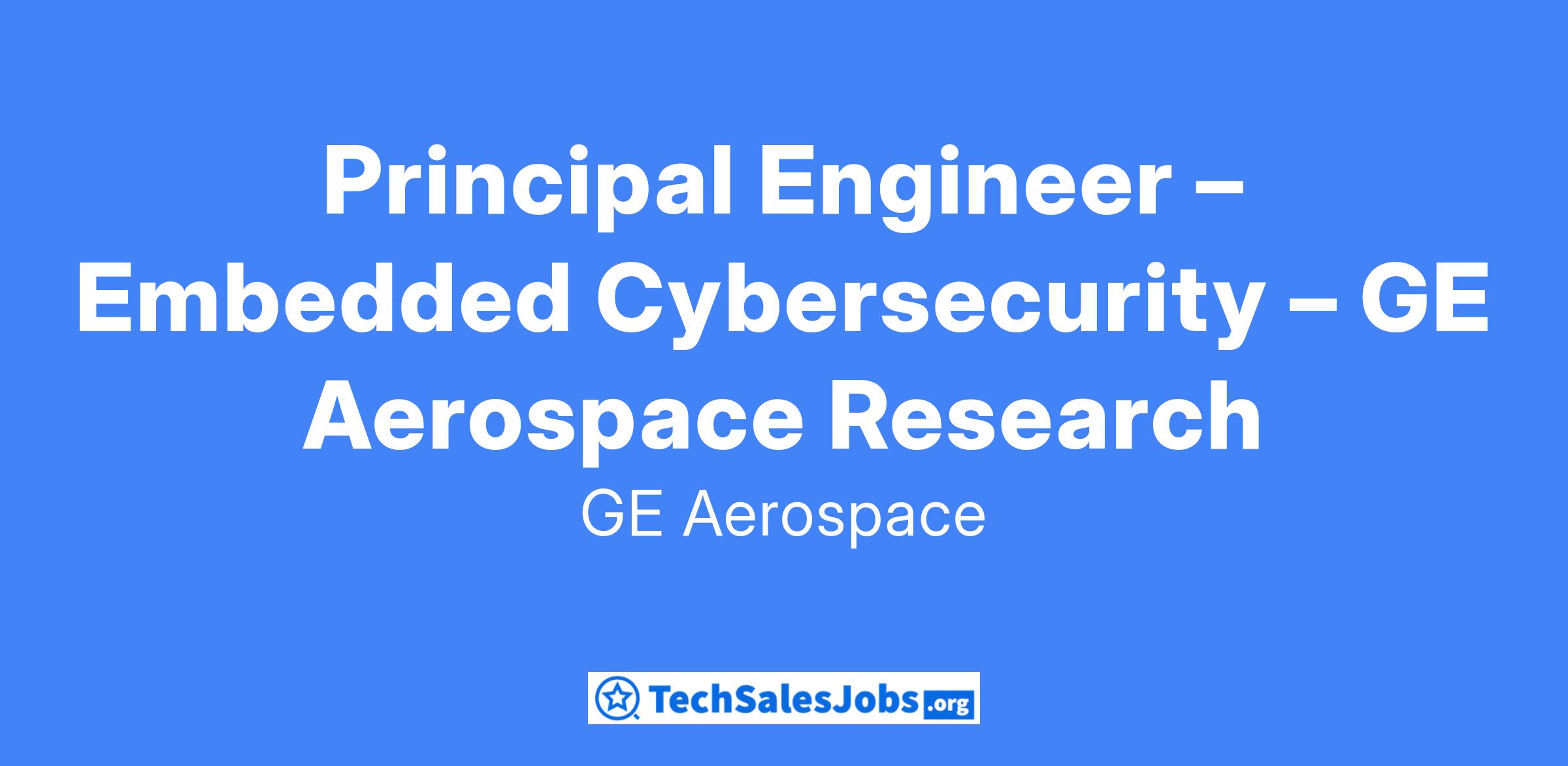 Principal Engineer – Embedded Cybersecurity – GE Aerospace Research