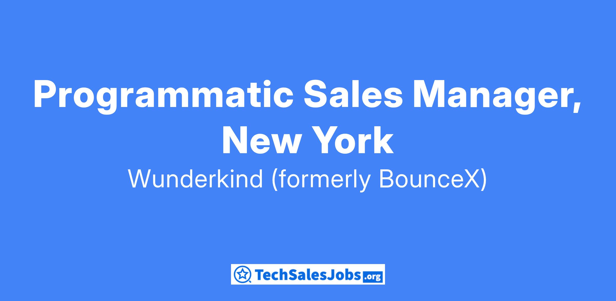 Wunderkind is looking for a top-performing Programmatic Sales Manager to work with our Senior Director on a specified list of agency, trading desk, brand and DSP accounts across NYC and the larger east coast region. We are looking for someone with a proven track record of revenue growth and has healthy client relationships.