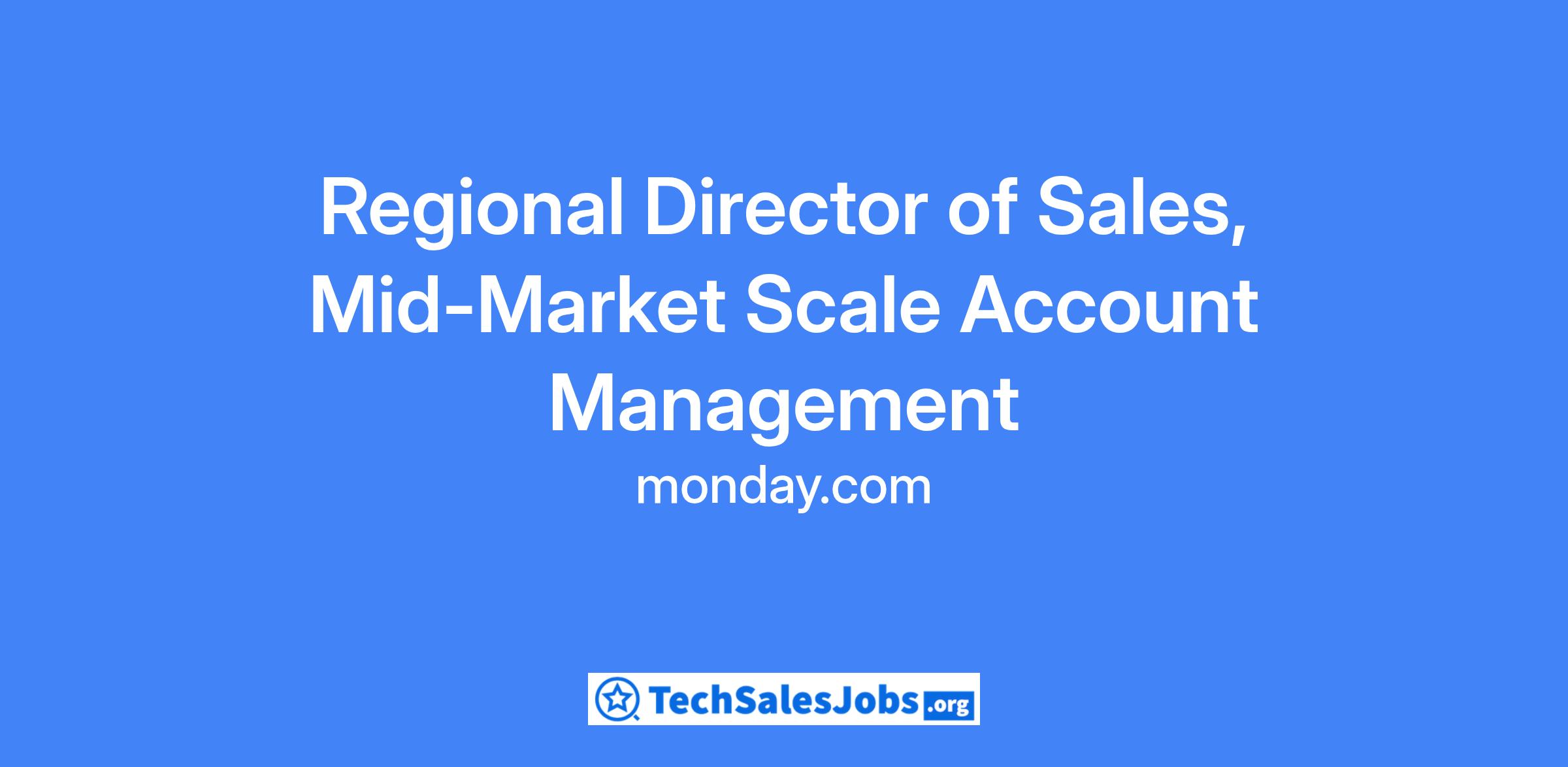monday.com is seeking an experienced Regional Director of Sales to lead our Mid-Market Scale Account Management organization across North America. Overseeing ~4 frontline managers and their teams, the Regional Director will have responsibility for embedding a collaborative and winning culture, driving sales strategy, and delivering consistent growth in a highly competitive segment.