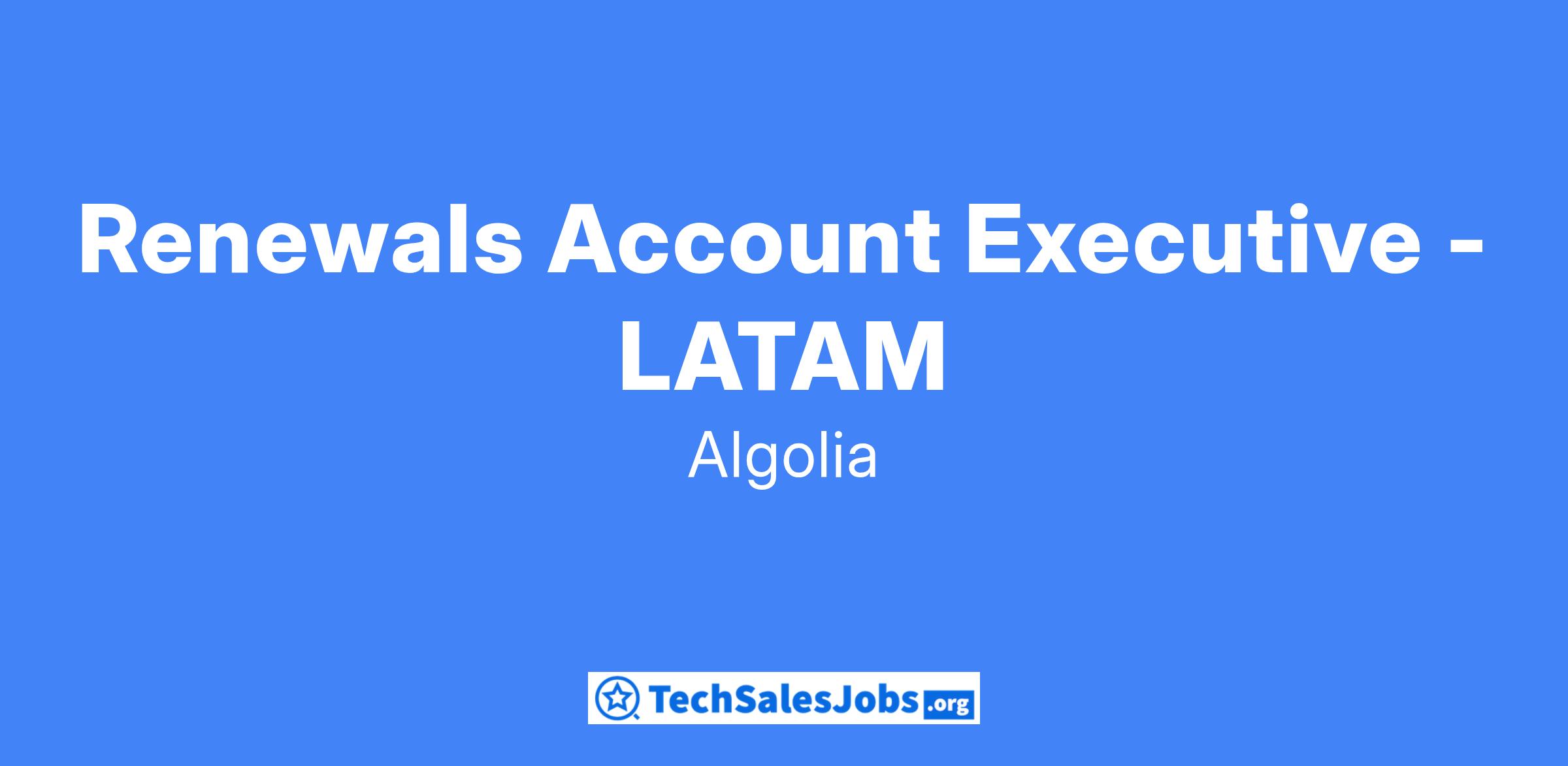At Algolia, we’re looking for a Renewals Account Executive to help support our growing LATAM customer base. This person will be responsible for strategic engagements with a dedicated portfolio of high-value customers. As a Renewals Account Executive, you will partner with Account Executives and Customer Success Managers to align on the account strategy for each customer, and help execute on these strategies. You will engage with each customer proactively to understand overall customer sentiment and satisfaction, while also identifying both risk and expansion potential. You are responsible for managing the renewal process, including but not limited to, providing renewal notice, creating quotes, forecasting, negotiating, and working through customer legal and procurement requirements. You will be working cross-functionally, partnering with Sales, CSEs, and CSMs, along with finance and the deal desk.
