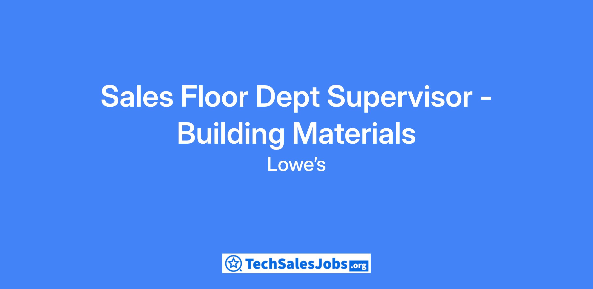 All Lowe’s associates deliver quality customer service while maintaining a store that is clean, safe, and stocked with the products our customers need. As a Sales Floor Department Supervisor, this means: