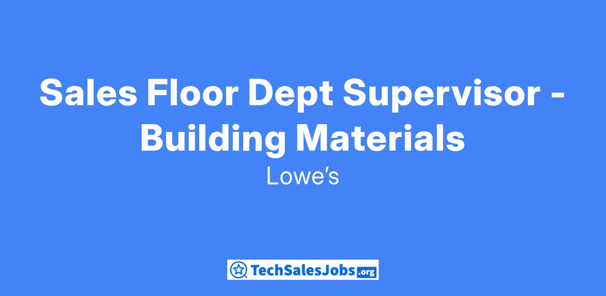 Sales Floor Dept Supervisor - Building Materials