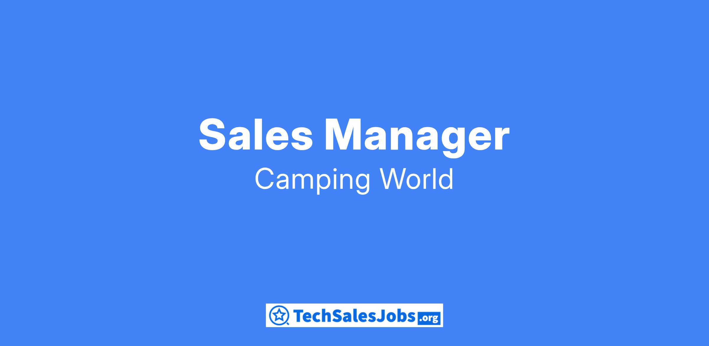 Camping World is looking for an experienced Sales Manager with the drive to go above and beyond expectations to deliver a high quality, top-notch customer driven experience. Qualified individuals will share their passion to produce and motivate a winning sales team. Ideal candidates will possess the drive to work hard, manage a sales team, have fun and make money!