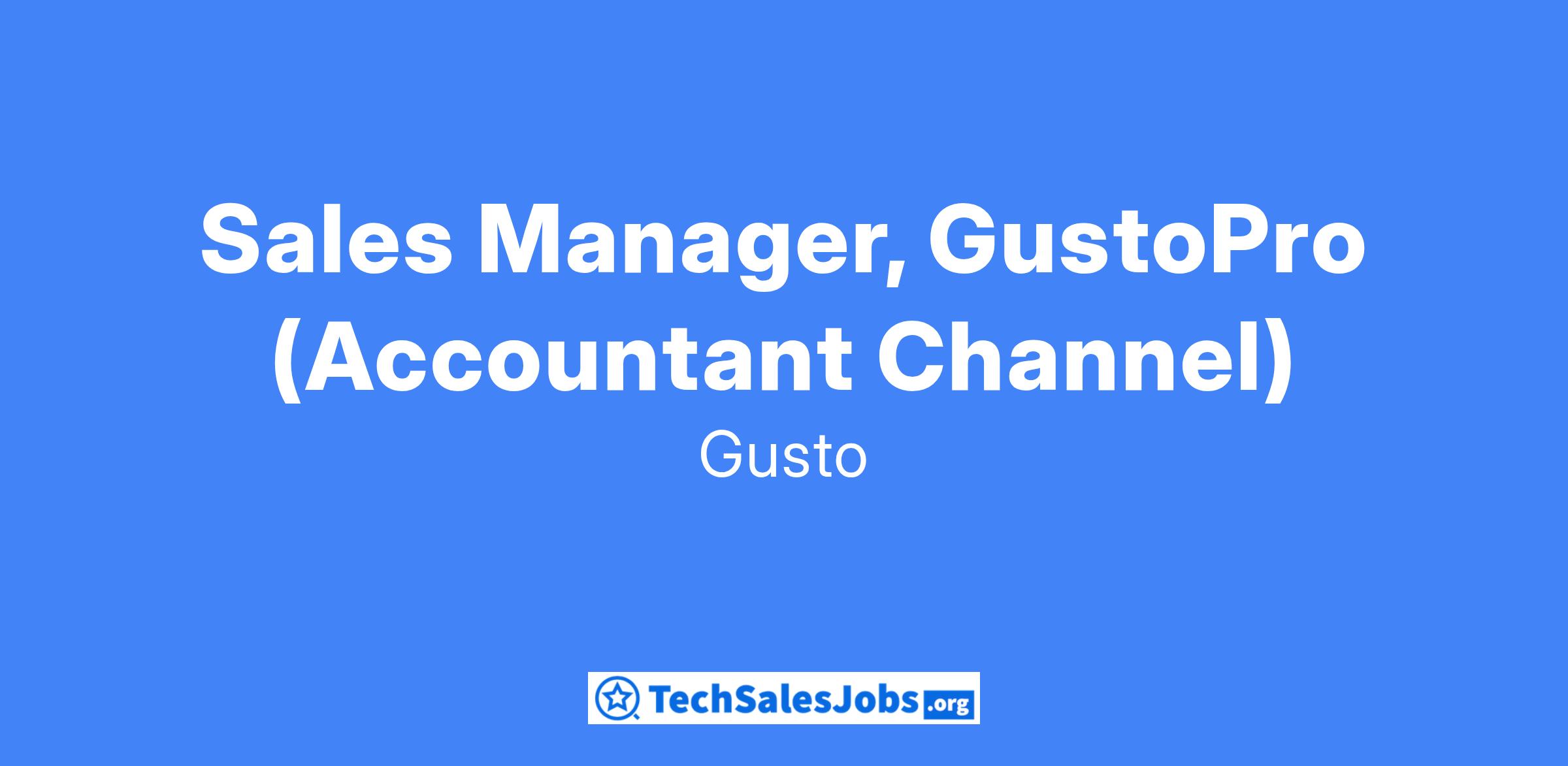 Gusto is seeking a Sales Leader to lead our GustoPro Sales Team, dedicated to driving Gusto's growth in the SMB space through channel relationships with accounting partners. This person will be responsible for net new revenue from our accounting partners, as well as ramping our existing firms to move their clients onto Gusto. The GustoPro Sales Leader will also help hire, train, and coach our Advisors to be a world-class consultative acquisition team. The pace in Gusto sales is fast and the landscape we’re playing in is ever-changing, and we’re looking for a dynamic, passionate, people leader who is motivated by that, and brings a good sense of humor to a team that is motivated to work hard and have a little bit of fun while doing it.