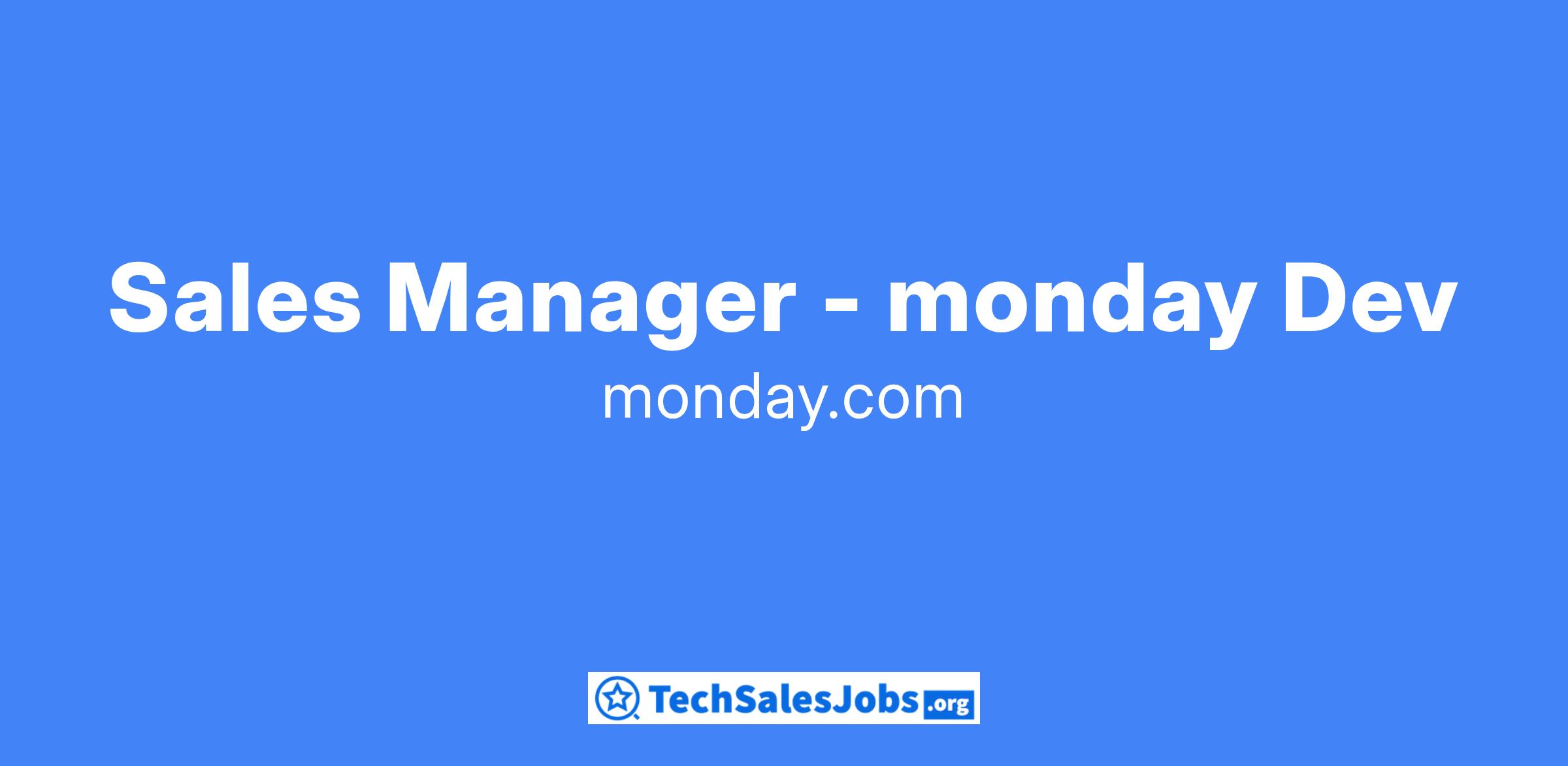 This is the start of something BIG! As a sales manager for our monday Dev product (fast-growing product line) you will be responsible for building, growing and developing the very best monday Dev sales team by providing expert-level industry and sales knowledge, while coaching, training and focusing on process improvement.