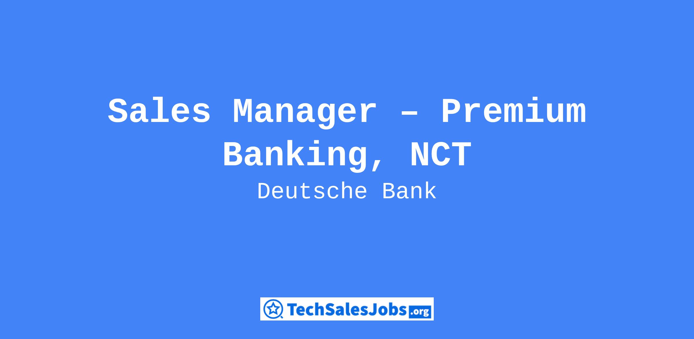 Job Title: Sales Manager – Premium Banking, NCT