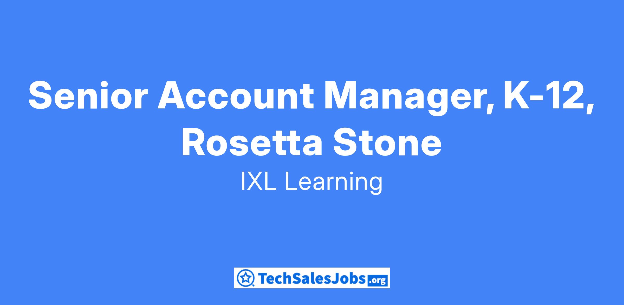 IXL Learning, developer of personalized learning products used by millions of people globally, is seeking an Account Manager for our Rosetta Stone team. Rosetta Stone has been the leading language learning program for 30 years.