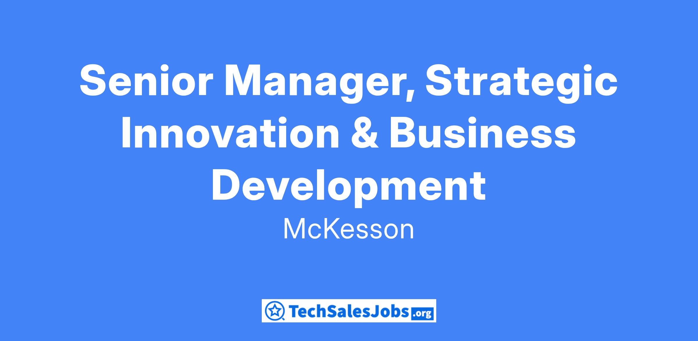 McKesson’s Corporate Strategy & Business Development (CSBD) strategic innovation arm, Strategic Innovation & Business Development (SIBD) is seeking to add an intrapreneurial, results-driven Senior Manager, Strategic Innovation & Business Development. This individual will support the identification, design, and launch of innovations that drive meaningful value to McKesson’s core supply chain and distribution businesses across the enterprise. Successful candidates will demonstrate strong strategic thinking, a collaborative mindset, and a passion for innovation and driving results. The Senior Manager will report directly to the Senior Director, Strategic Innovation & Business Development.