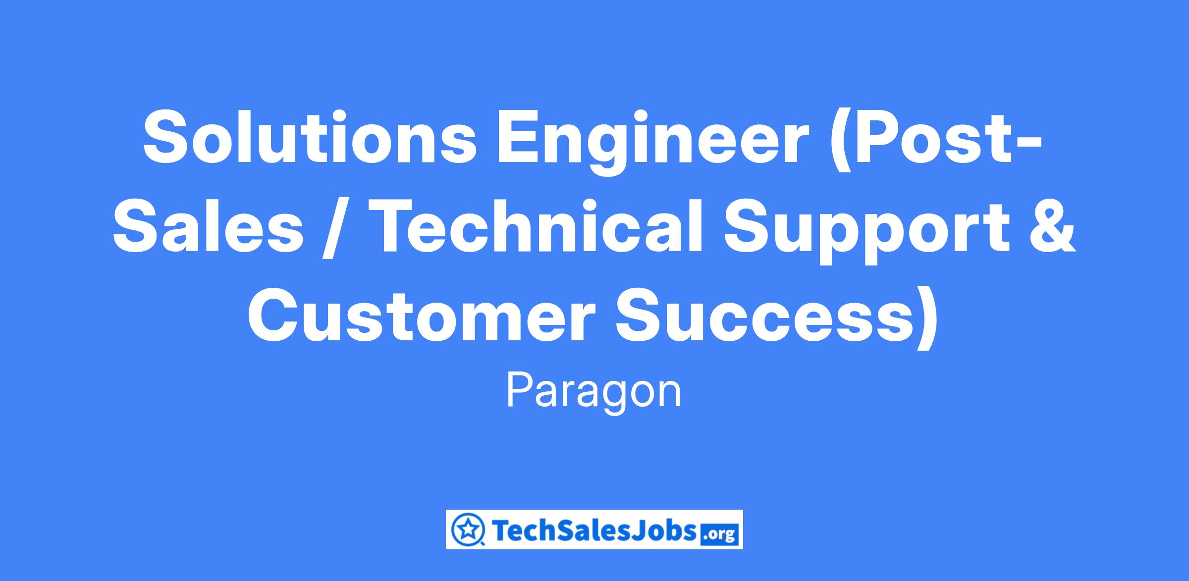We are seeking a Solutions Engineer to join our team at Paragon! As an early member of our team, you will help our customers realize the incredible potential of our platform. You will work across the business in driving product adoption, strengthening customer engagement, providing input into our product roadmap, and ensuring our company is as customer-centric as possible.