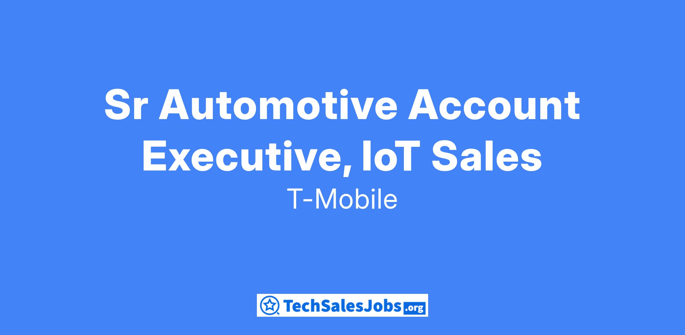 The Senior Automotive IoT Account Executive is a automotive IoT sales professional that actively prospects and cultivates new connected car business relationships that drive IoT revenue for T-Mobile. Responsible for working with automottive companies to implement new connected car initiatives that drive strategic revenue & realize cost savings by using T-Mobile IoT and it's solutioning resources.