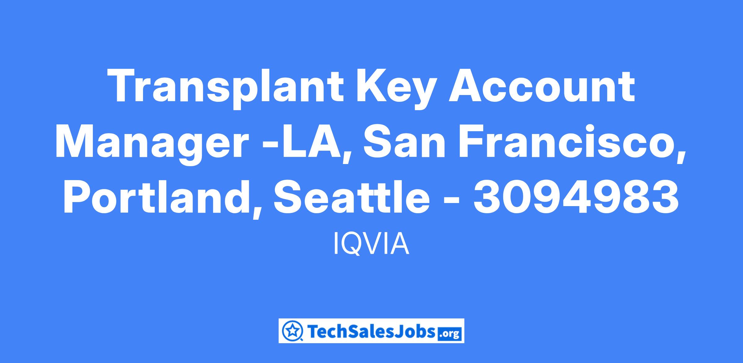 This is an exciting opportunity to join IQVIA as a Transplant Oncology/Hematology Key Account Manager to drive sales for a new and exciting startup company in the Transplant Oncology/Hematology market.