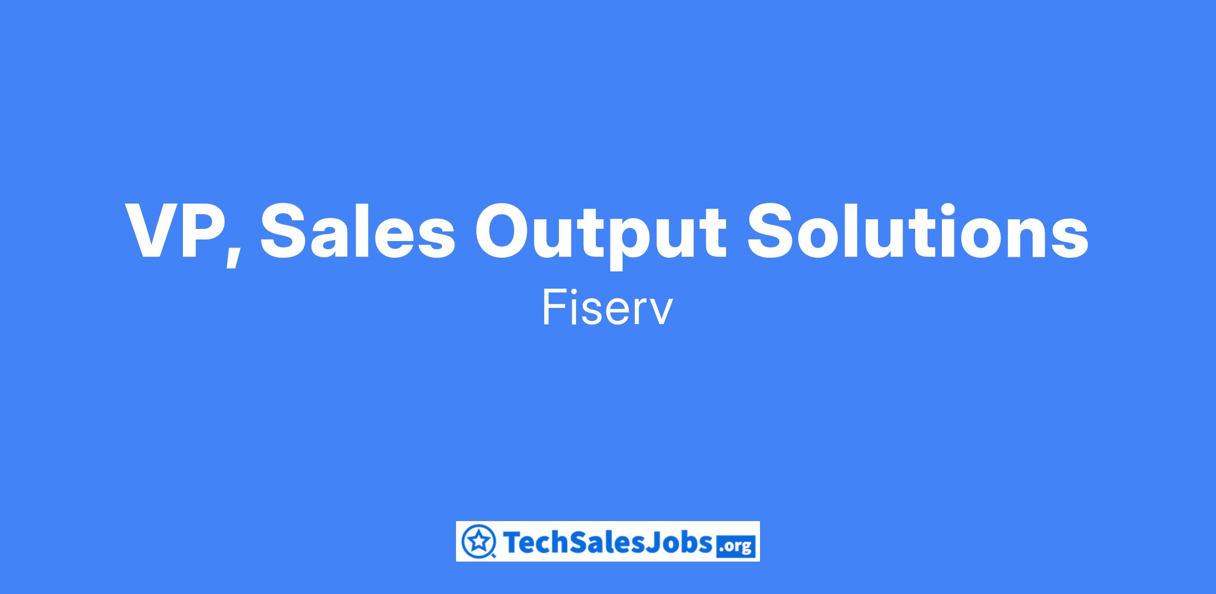VP, Sales Output SolutionsWhat does a successful VP, Sales Output Solutions do at Fiserv?