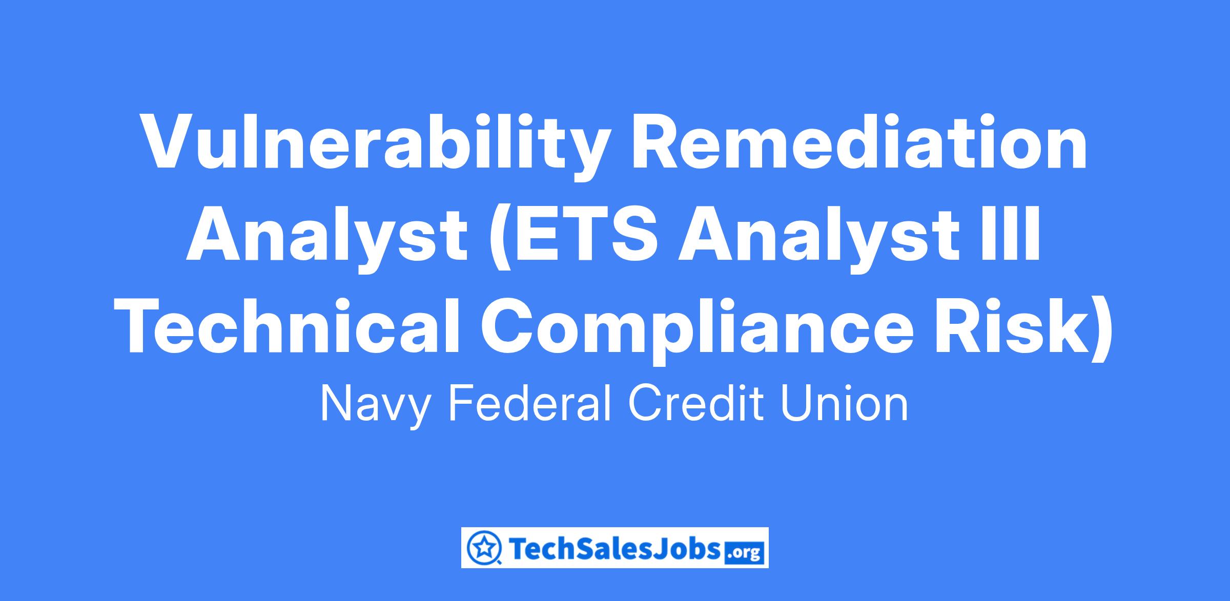 Vulnerability Remediation Analyst (ETS Analyst III Technical Compliance Risk)